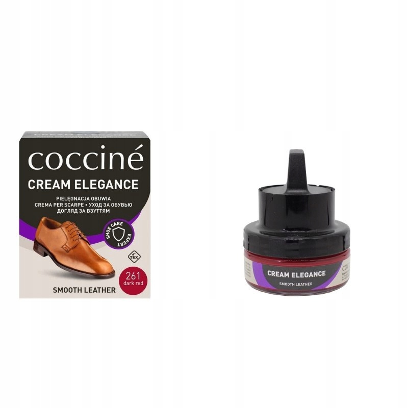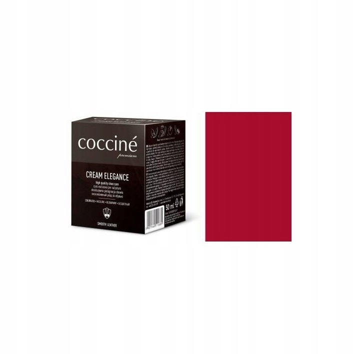 КОЛІР: ТЕМНО-ЧЕРВОНИЙ Завдяки великій кількості натурального воску та поживних речовин, крем для гладкої шкіри Coccine Elegance помітно покращить стан шкіряних поверхонь. Поверніть їм втрачену славу за допомогою крему для взуття. Високоякісний продукт, який швидко вбирається і досягає глибоких шарів шкіри, миттєво зміцнює її від пошкоджень і помітно розгладжує.