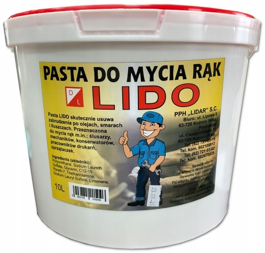 - LIDO містить поверхнево-активну речовину, активний компонент, речовини, що захищають шкіру рук, абразивний матеріал і ароматичну композицію.