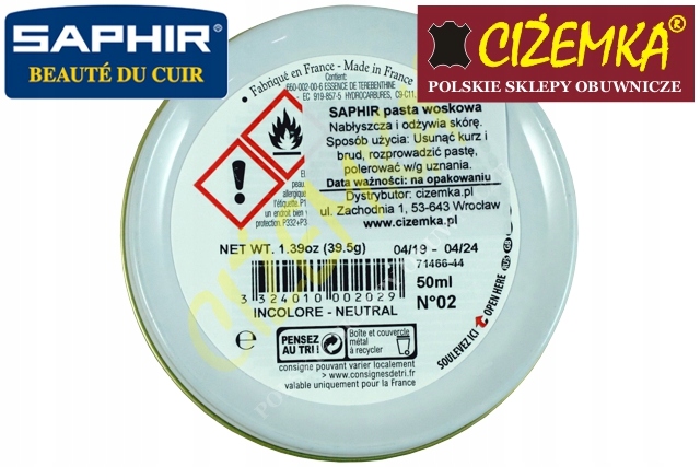 *Якщо взуття було попередньо просочене або взуття сильно забруднене, рекомендується очистити шкіру RENOMAT SAPHIR перед нанесенням пасти SAPHIR