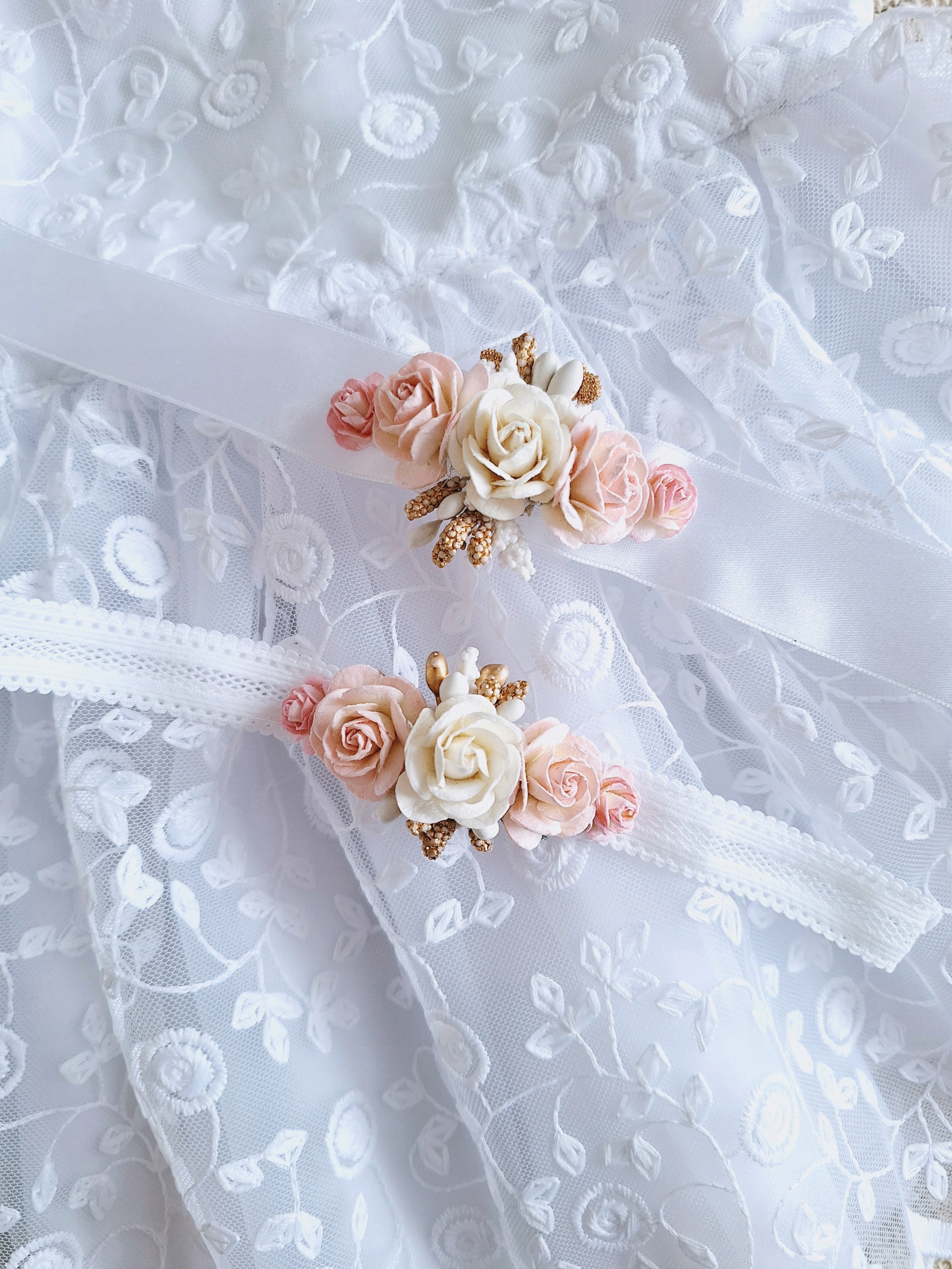 ремінь і смуга для дівчат у пастельної троянди/білого/золота . Дуже делікатні відтінки, вони будуть ідеально відповідати білим, рожевим сукням.