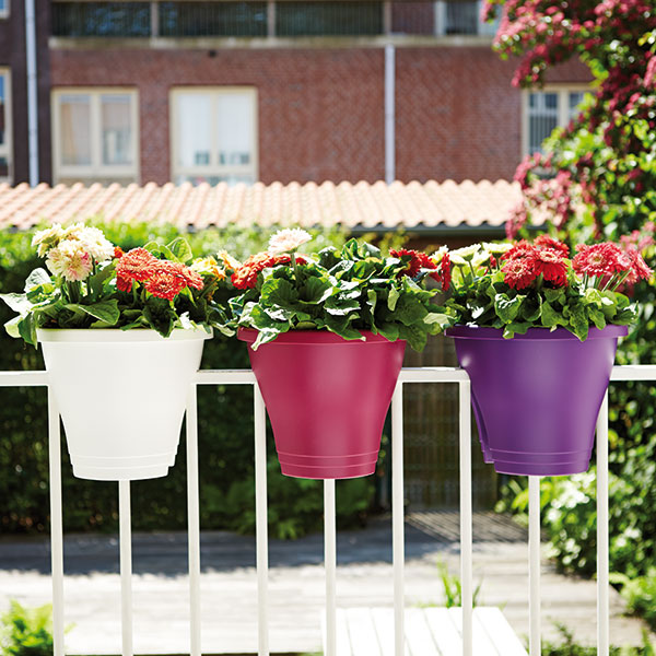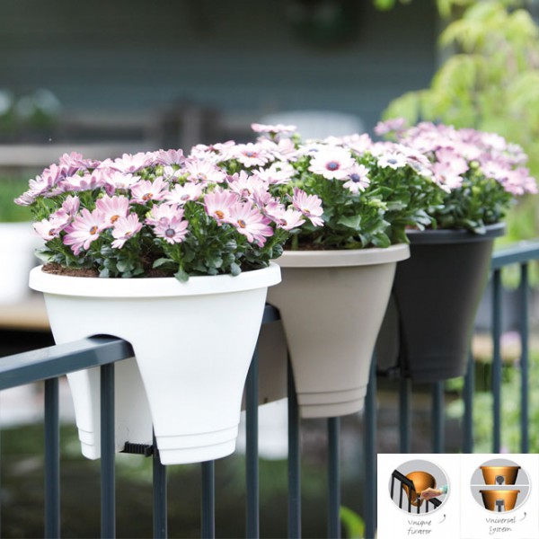 Балконний вазон CORSICA FLOWER BRIDGE з високоякісного пластику. Морозостійкий, легкий, стійкий до ударів і УФ-променів (не змінює колір). Ідеально підходить для використання на балконах або поручнях.