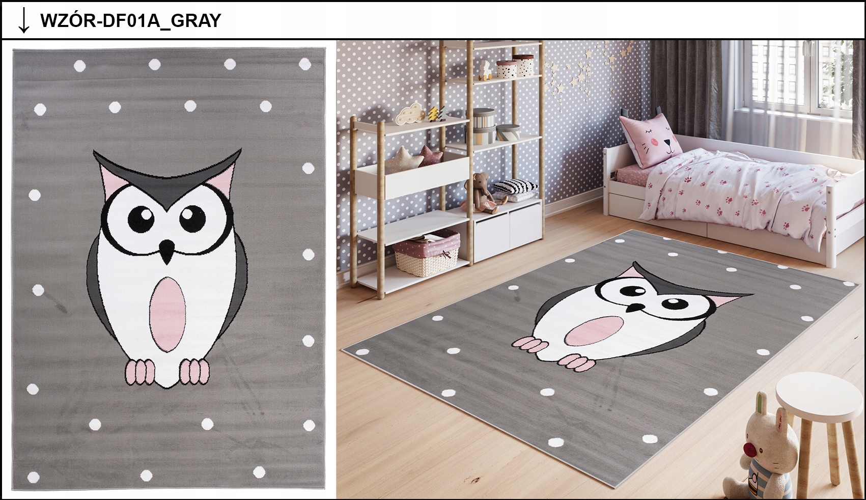Пастельний килим 120X170 PINK для дітей рожевий сірий