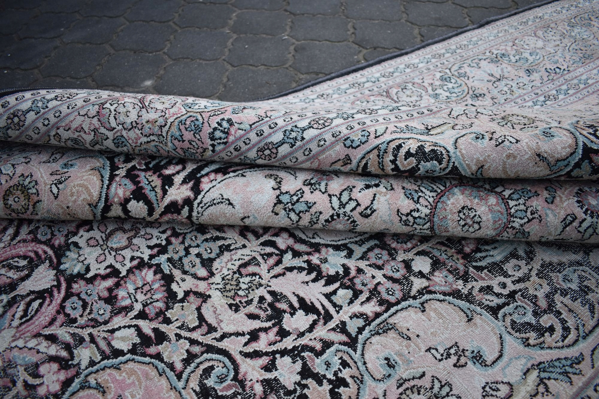 PASTELOWY RĘCZNIE TKANY JEDWABNY KASHMIR VINTAGE - 1,83/2,90m