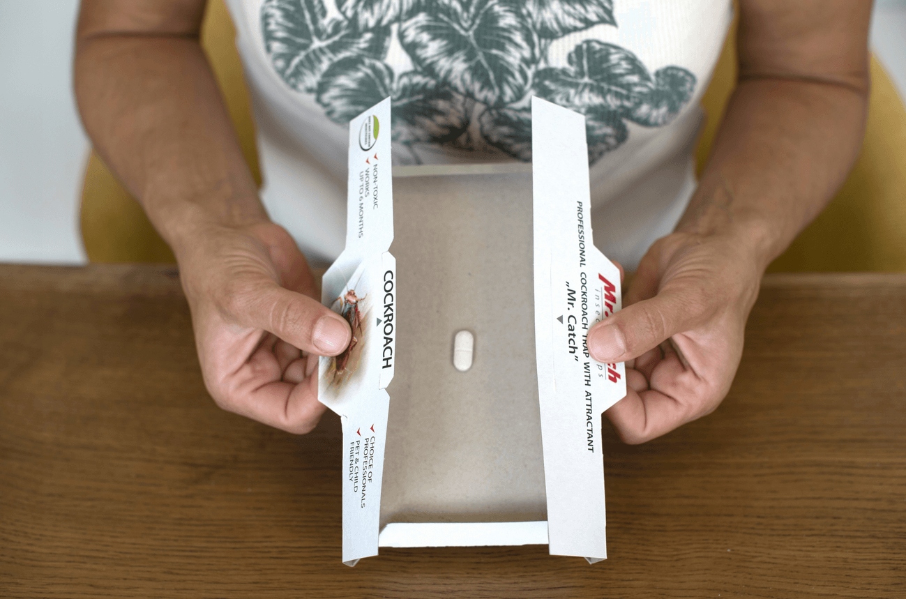 Пастка-приманка Mr. Catch є надзвичайно ефективною зброєю проти тарганів та інших повзаючих комах. Не містить інсектицидів та інших шкідливих хімічних речовин. Завдяки цьому він надзвичайно безпечний у використанні. Він зберігає ефективність до 6 місяців після впливу, а його унікальною особливістю є таблетка, яка сильно приваблює комах специфічним запахом. Комахи, залучені до його внутрішньої частини, ефективно утримуються там міцною клейкою поверхнею. Упаковка містить додаткові клейкі смужки, які дозволяють прикріпити пастку також до вертикальної поверхні. Пастка досить тонка, щоб її можна було заховати в щілини, наприклад, між шафою та стіною, таким чином не буде видно. Пастка рекомендована професійними командами боротьби зі шкідниками для боротьби з тарганами та моніторингу їх присутності.