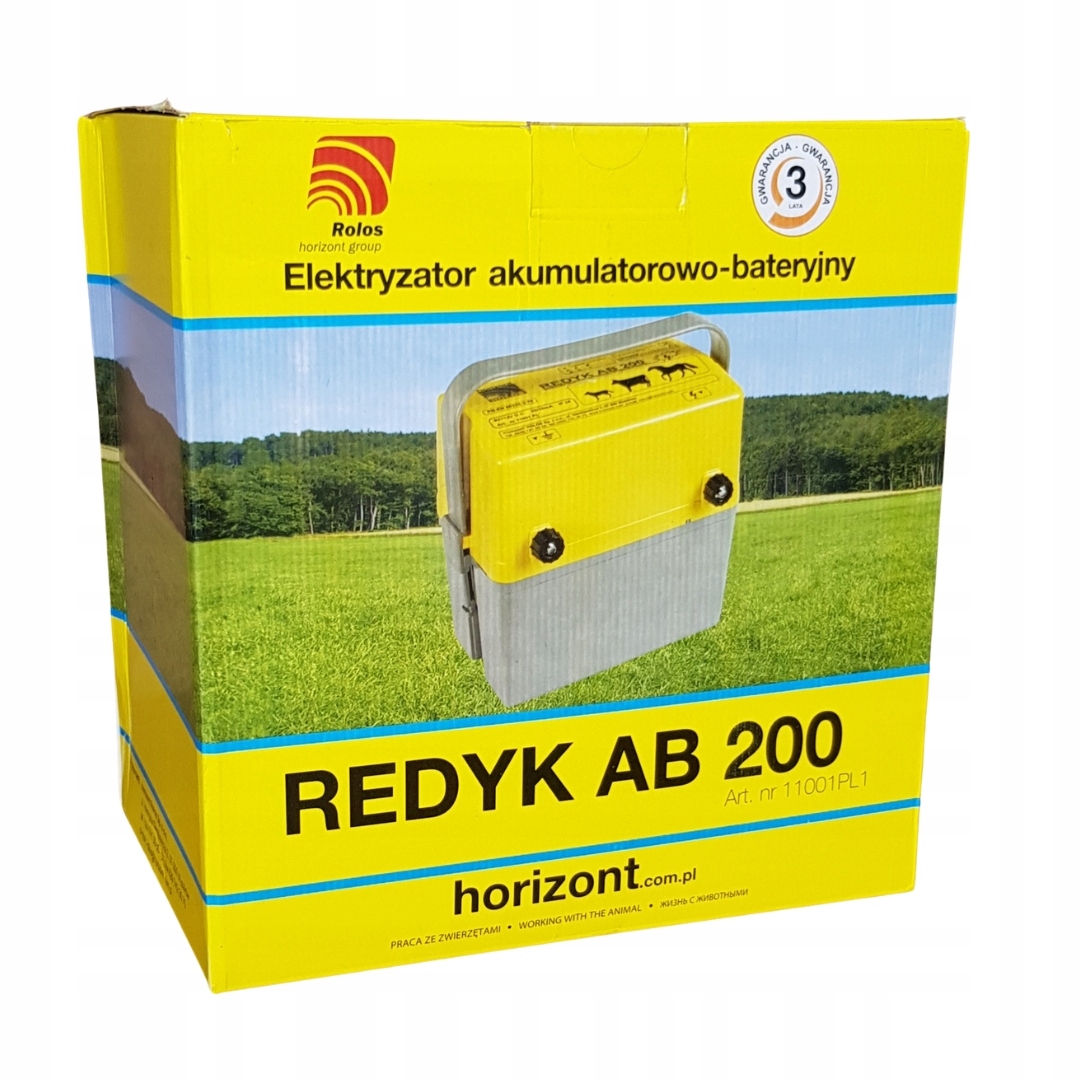 Популярний енергетик із живленням від батарейок 9 В або 12 В. REDYK AB200 - джерело електричних імпульсів живлення огорожі, призначене для випасу худоби та захисту польових і лісових культур від знищення тваринами. Може використовуватися для живлення електротренажерів, які встановлюються в племінних огорожах, успішно справляється зі своїми завданнями при живленні електроогорожі середньої довжини. Пристрій оснащений діодною системою, яка показує падіння напруги та стан заряду акумулятора.