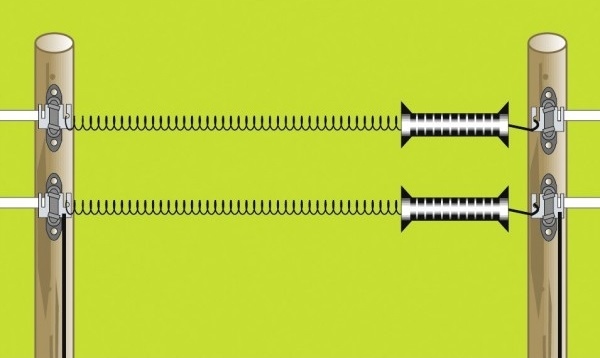 Повний комплект воріт, призначений для будівництва хвірток і воріт в електроогорожах. Замок воріт складається з: - ізольованої ручки воріт - гнучкої пружини з оцинкованого дроту, що розтягується на довжину 5 м - 2 шт ізоляторів воріт.