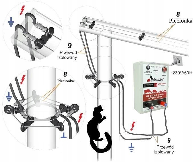 Оскільки електричні кабелі встановлені на жолобах, і куниця, яка може торкнутися їх, не має зв’язку із землею, контакт із землею джерела живлення не повинні бути підключені до землі.