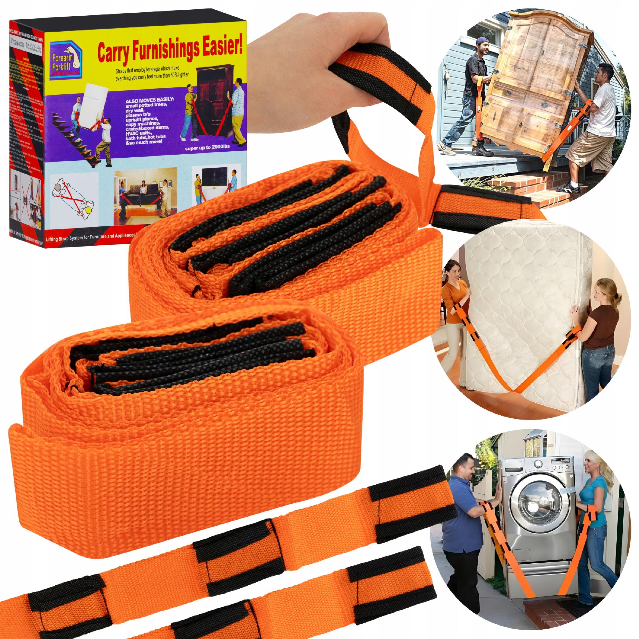 Регулювання довжини ременів дозволяє адаптувати їх до різних розмірів і форм меблів, що робить їх універсальним інструментом для перенесення різних предметів. Крім того, помаранчевий колір забезпечує їхню хорошу видимість, що полегшує їх розташування та використання.