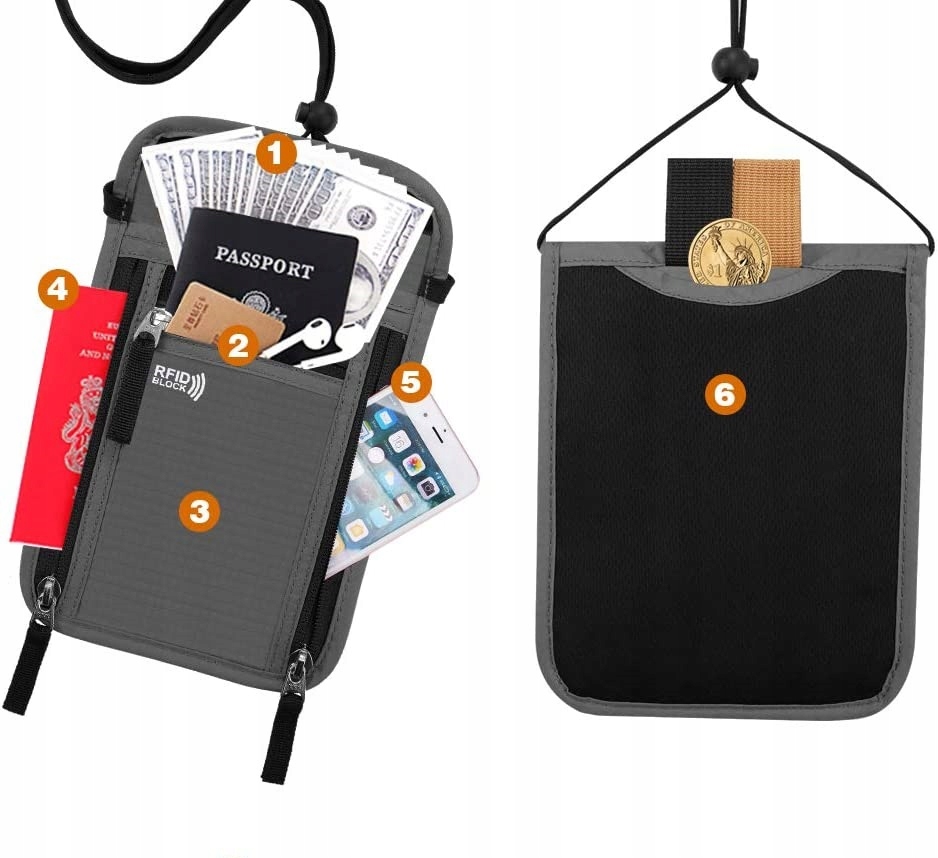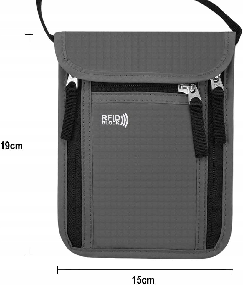 PASZPORTÓWKA TORBA NERKA NA SZYJĘ RFID ANTYKRADZIEŻOWA PODRÓŻNA WODOODPORNA