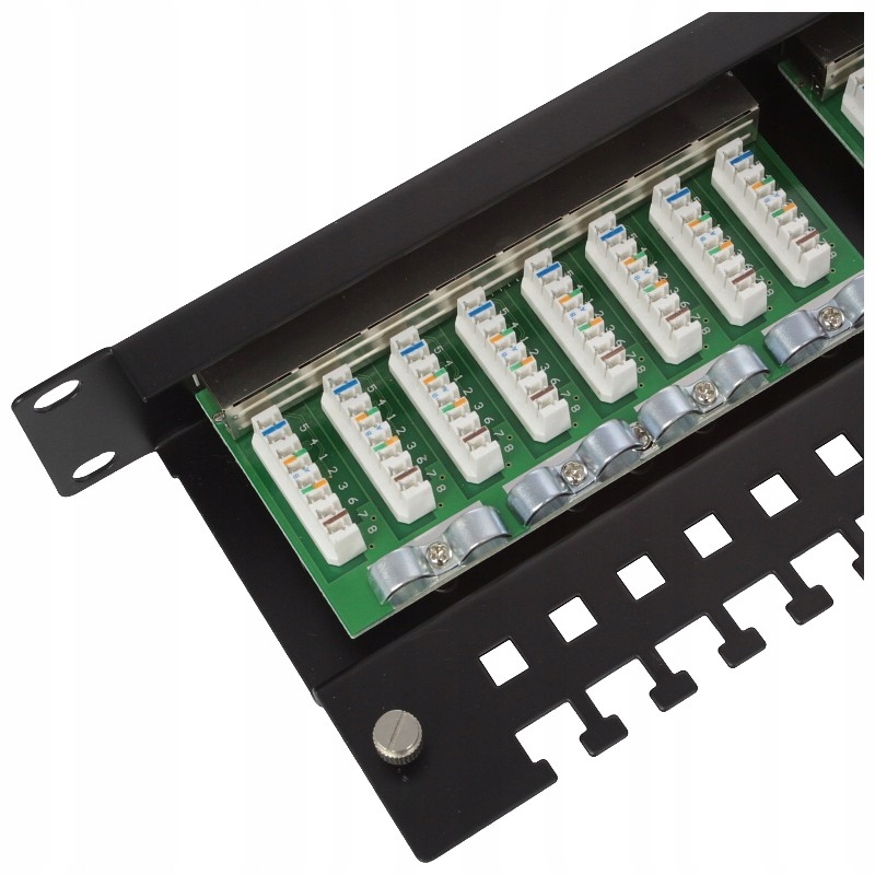 Щироподібні з’єднувачі типу IDC мають кольорове кодування для полегшення правильного встановлення кабелів у стандартах T568A та T568B. Кожен порт має власну нумерацію. Простий доступ до роз’ємів на задній частині панелі забезпечує легке технічне обслуговування та зміну конфігурації з’єднань. Кожна точка з’єднання оснащена описовим полем для полегшення маркування портів.