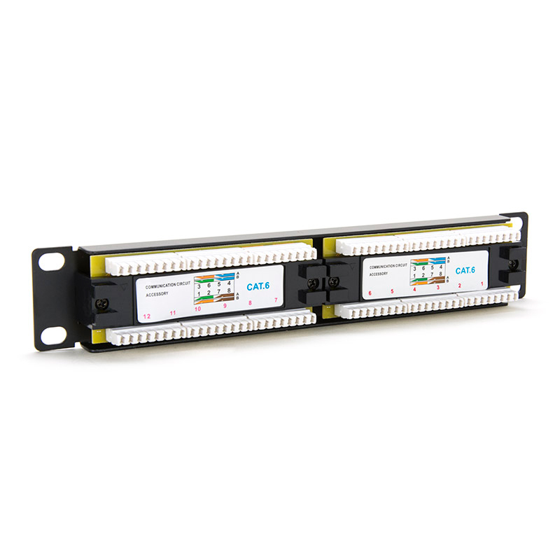 Патч ICT-панель розроблено для використання в основних і проміжних точках розподілу у високошвидкісних мережах ICT. Це пасивний елемент структурованого кабелю, який використовується для завершення та організації кабелів витої пари в 10-дюймових стійках. Комутаційна панель оснащена 12 неекранованими портами RJ-45 категорії 6.