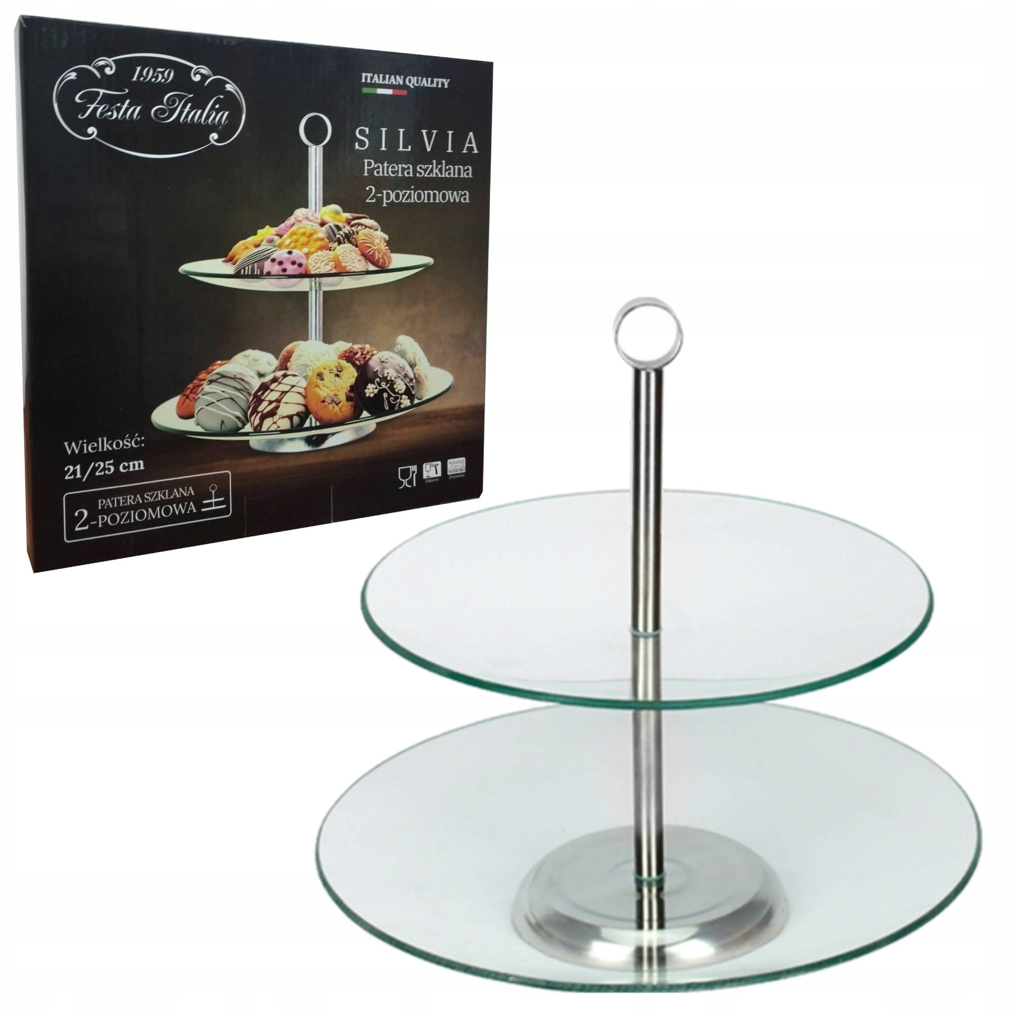 PATERA DWUPOZIOMOWA SZKLANA STOJAK ciasto owoce