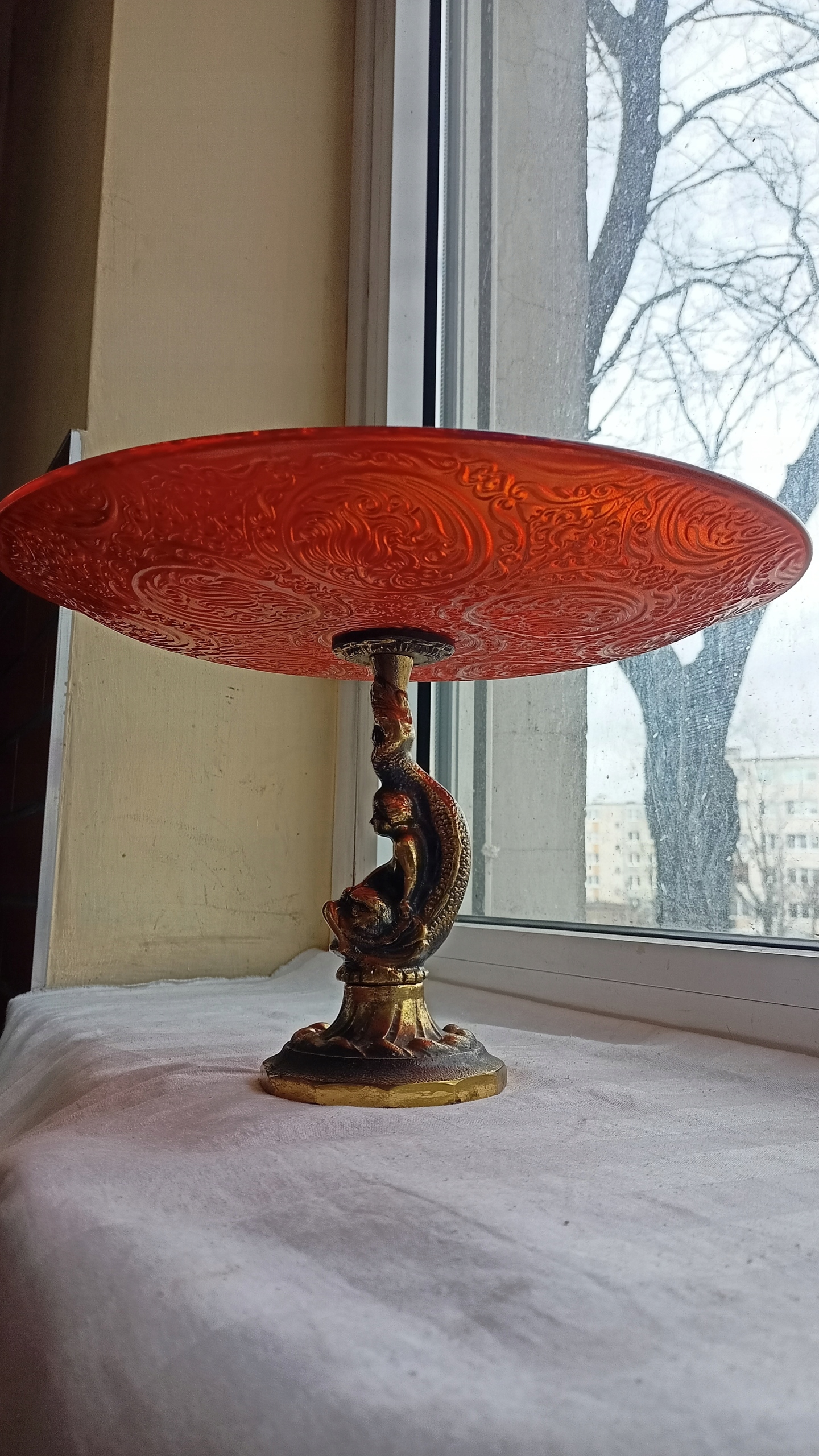 PATERA NA FIGURALNEJ NODZE TALERZ KRYSZTAŁ ORANGE