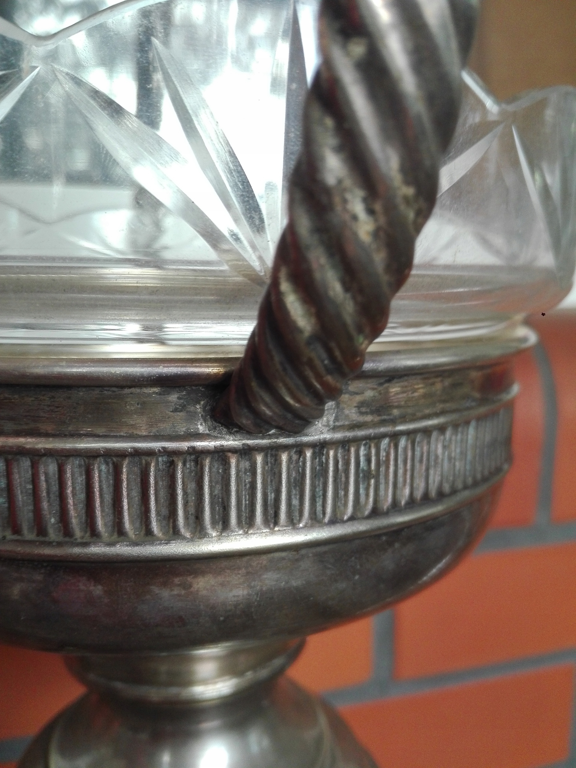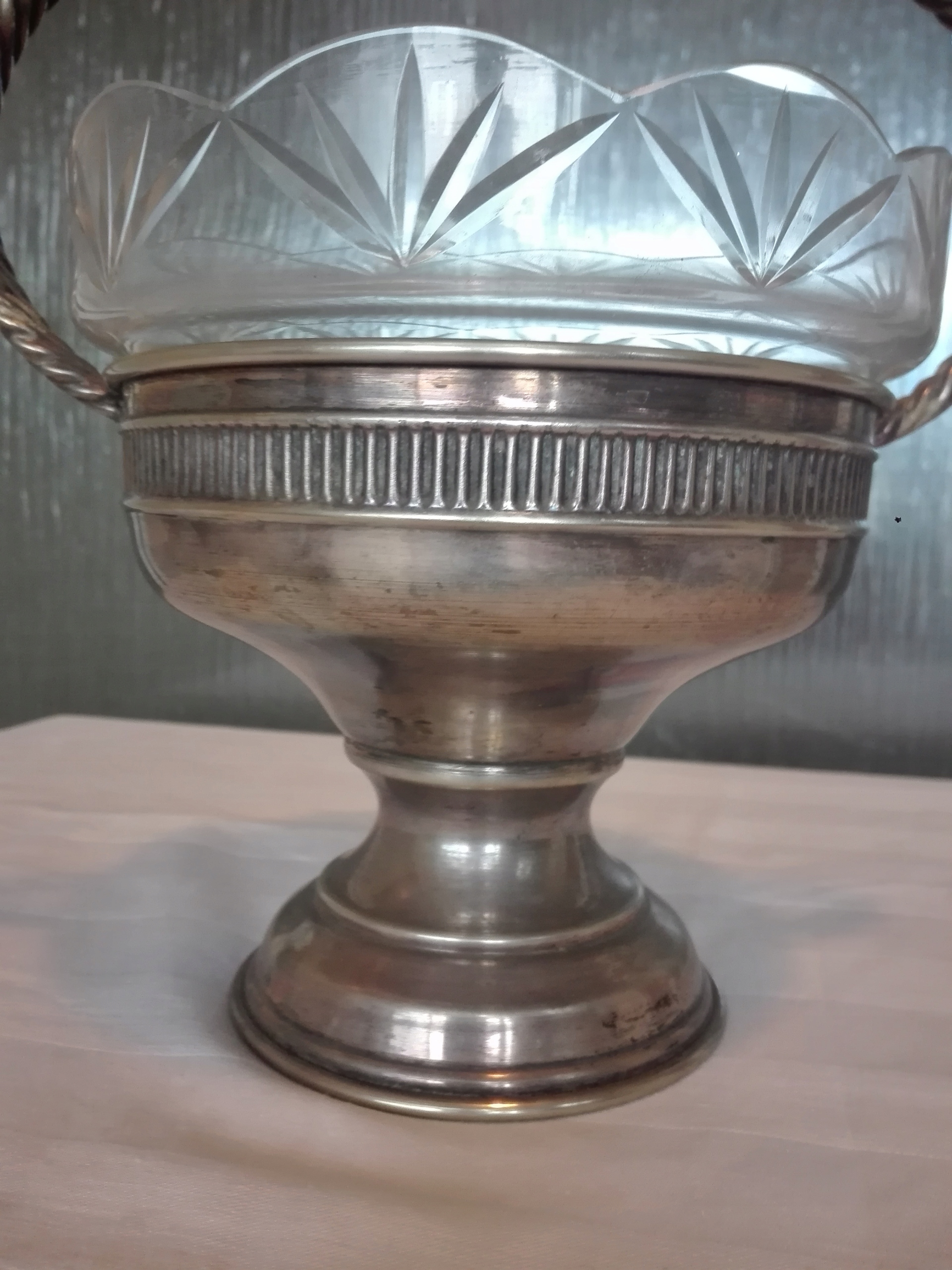 - Тарілка на ніжці з полірованою скляною вставкою. Походить приблизно з 1910 року.