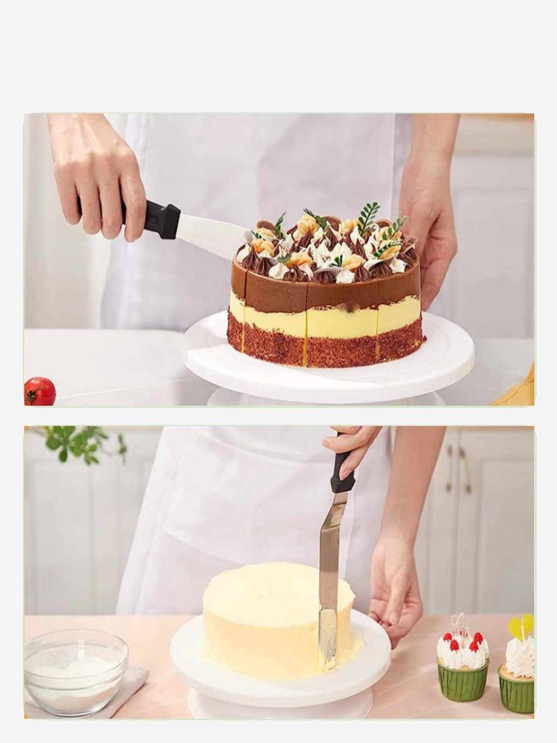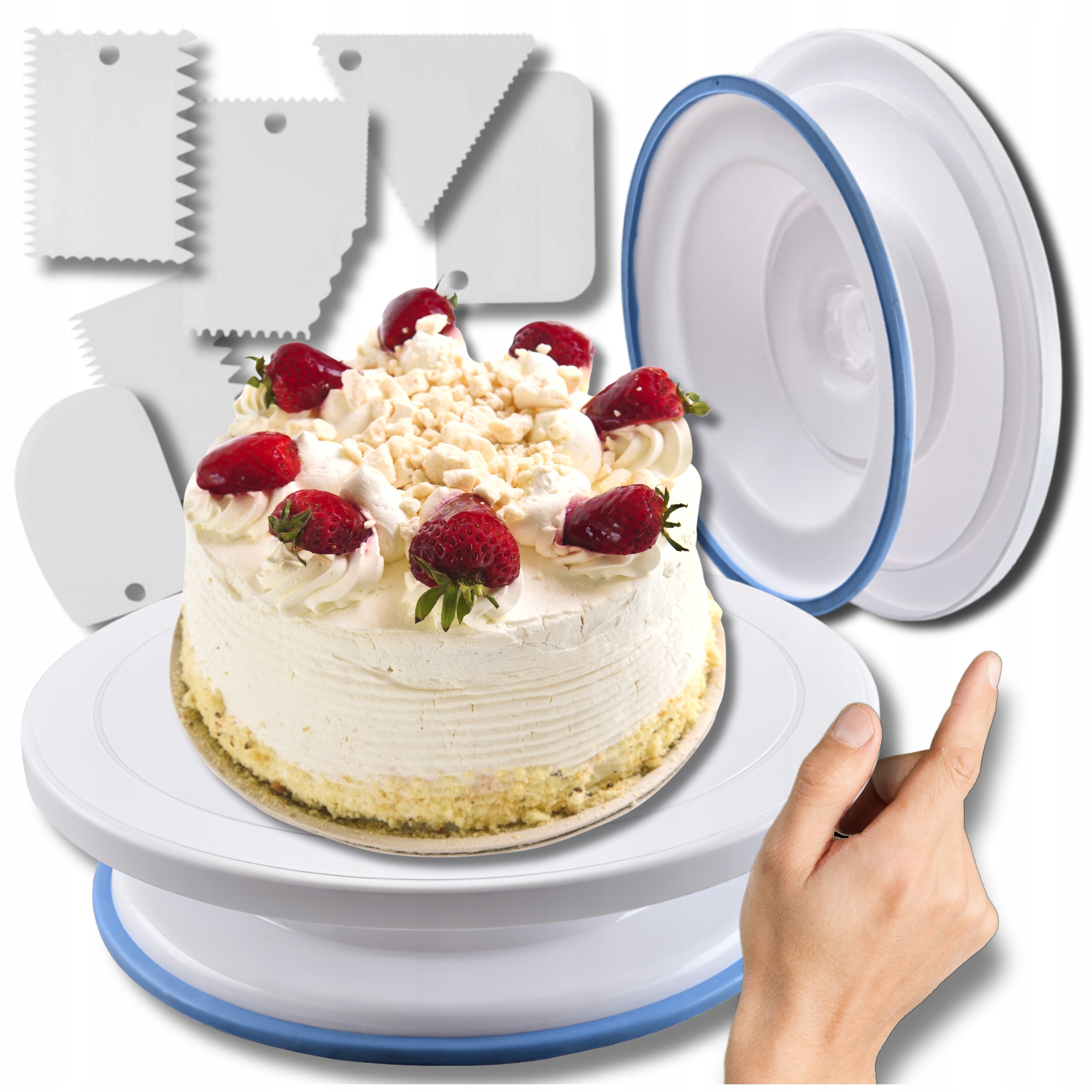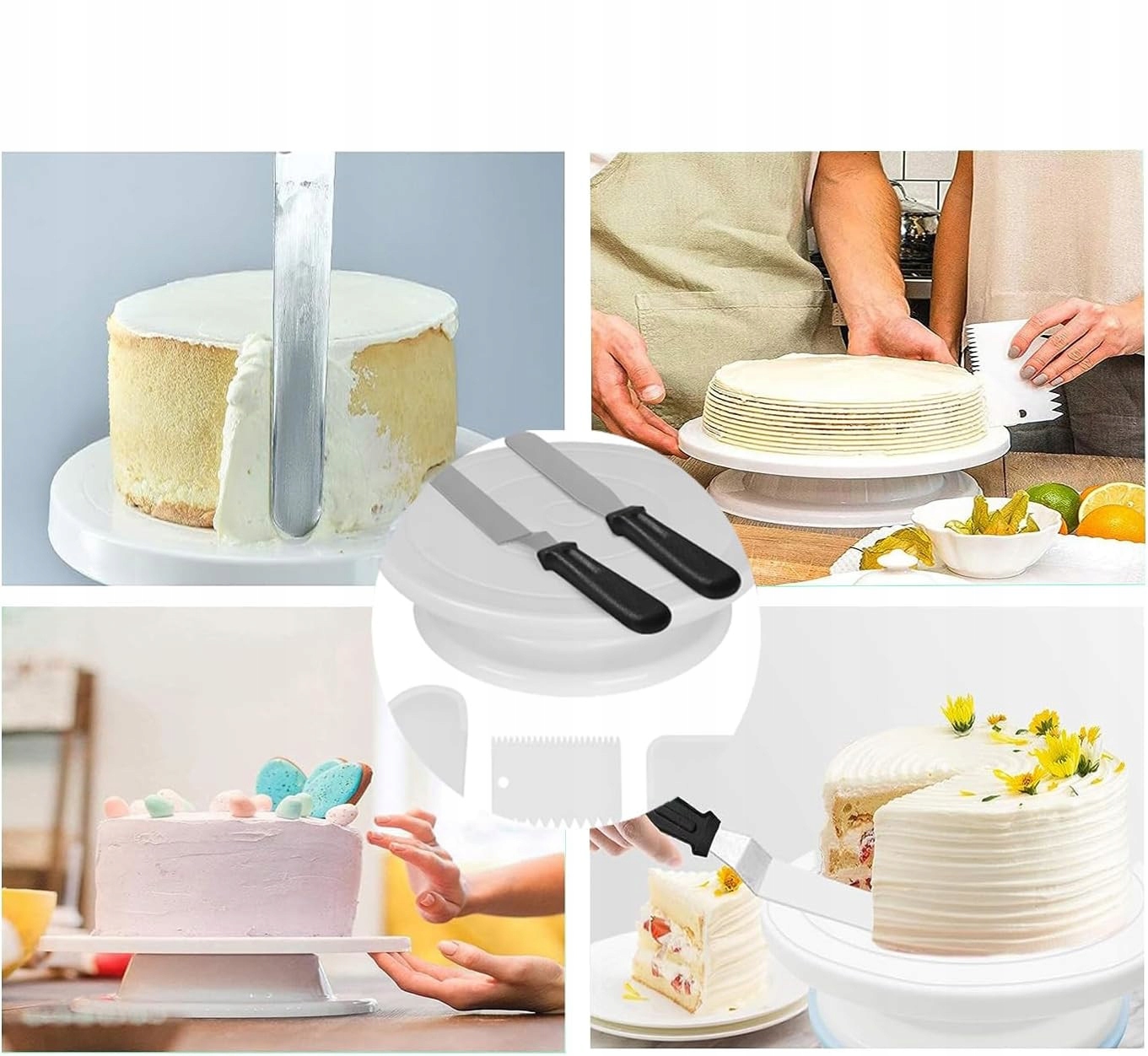 PATERA OBROTOWA NA CIASTO TALERZ OBROTOWY DO TORTU CIAST + 6 SZPATUŁEK