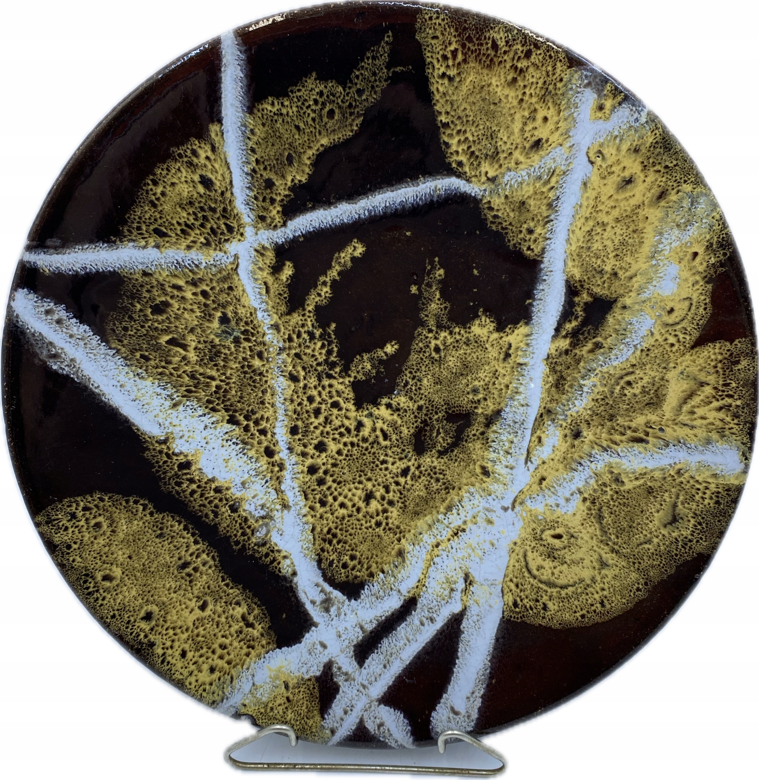 Тарілка з червоної глини з унікальною глазур’ю від кооперативу Przyjaźń Włocławek. Дизайн Анджея Тшаски 1960-х років. Розміри; Діаметр 32 см.