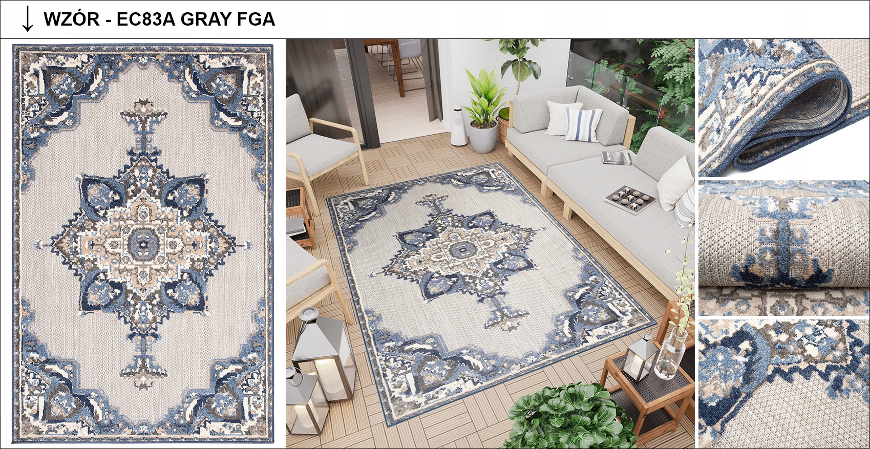 Патіо килими мають рослинні, геометричні та східні візерунки. Все в сірих, бежевих і коричневих відтінках, але є винятки з зеленим або темно-синім відтінком. Завдяки цьому кожен може знайти щось для себе.