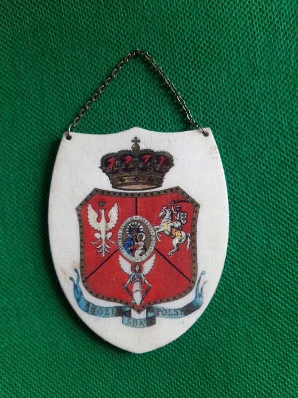 Ми представляємо вам унікальний дерев’яний жолоб з гербами січневого повстання (з епохи). Напис навколо образу Матері Божої: Regina + poloniae + ora + pro + nobis + Ісус + Марія; Під гербами на стрічці знаходиться напис "Боже продає Польща".