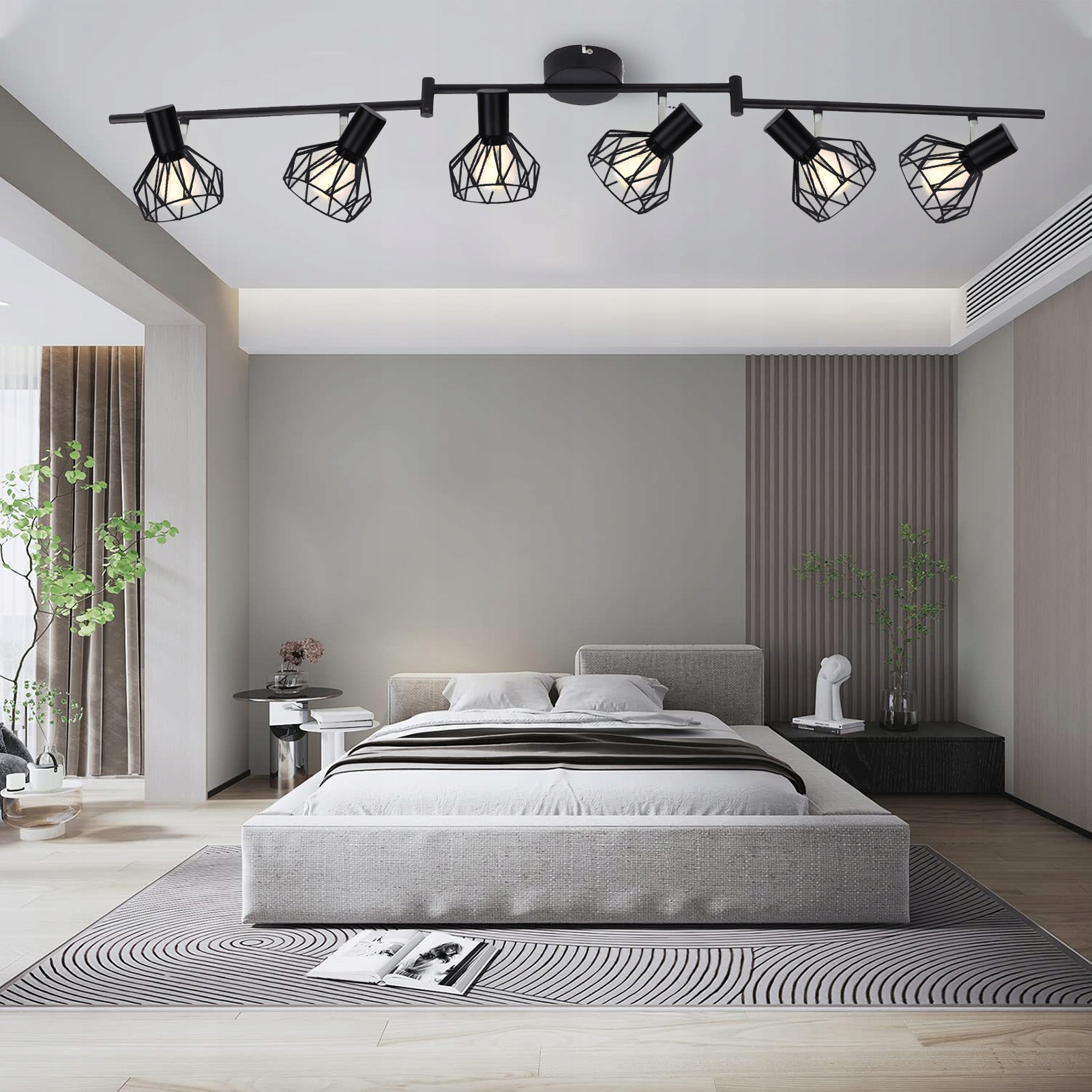 2. Сучасна проста підставка для прожекторів: це дуже модна та унікальна стельова лампа, матовий чорний корпус із абажуром у металевій клітці, що робить прикрасу вашого дому унікальною та сучасною, а поєднання сучасного стилю може вивести ваше оздоблення на новий рівень.