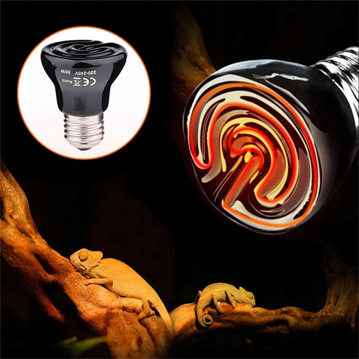 Лампа інфрачервоного обігрівача для тераріуму, акватераріуму та віварію потужністю 50 Вт + РЕГУЛЬОВАНА МЕТАЛЕВА РУЧКА E27