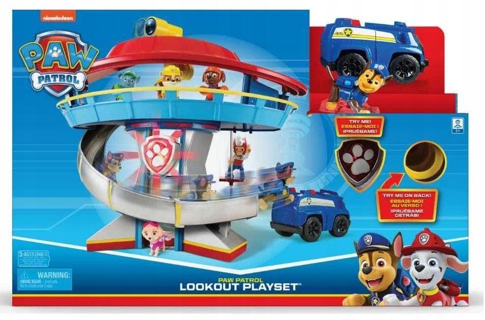 Основне житло з серії PAW Patrol - це набір, що також містить фігурку погоні з транспортним засобом. Він має легкі та звукові ефекти. Завдяки функціональному перископу, який обертається 360 градусів, Чейз може добре спостерігати за оточенням і швидко реагувати на загрозу. Швидку готовність до місії допомагає слайд та ліфт.
