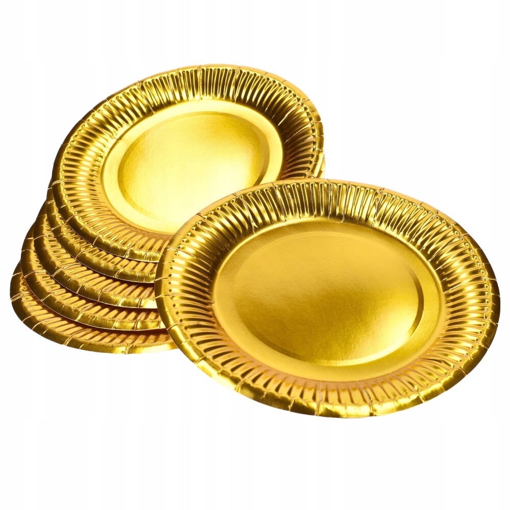 - паперові тарілки: 6 штук, діаметр 18 см, золото - ідеально підходить для десертів, фруктів та закусок.