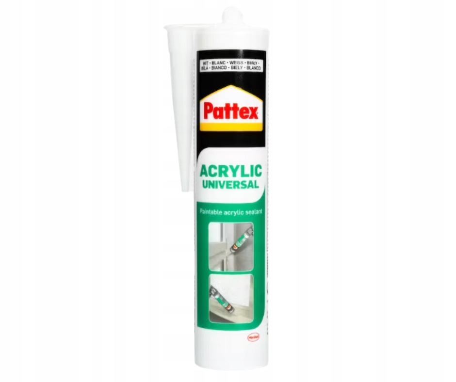 Універсальна акрилова шпаклівка Pattex для внутрішнього та зовнішнього використання.