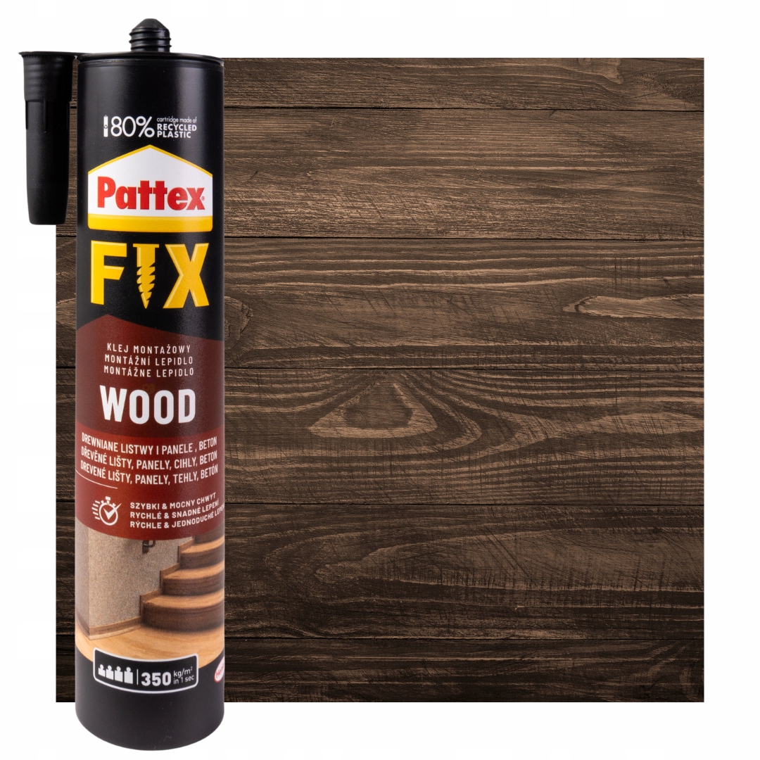PATTEX KLEJ MONTAŻOWY FIX WOOD DO ŁĄCZENIA ELEMENTÓW Z DREWNA GIPSU 385G