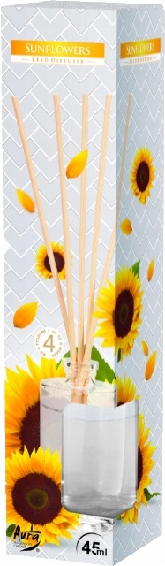 Дифузор ароматів зі стіками, соняшникиоб'ємом 45 мл і стійкість аромату до 4 тижнів BISPOL. p>