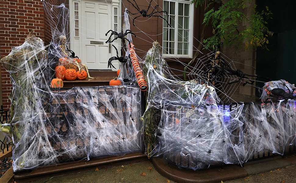 🕷️Чудово підходить для внутрішніх і зовнішніх прикрас на Хелловін. Сітки добре розтягуються, і чим тонше вони розтягнуті, тим реалістичнішими виглядають.