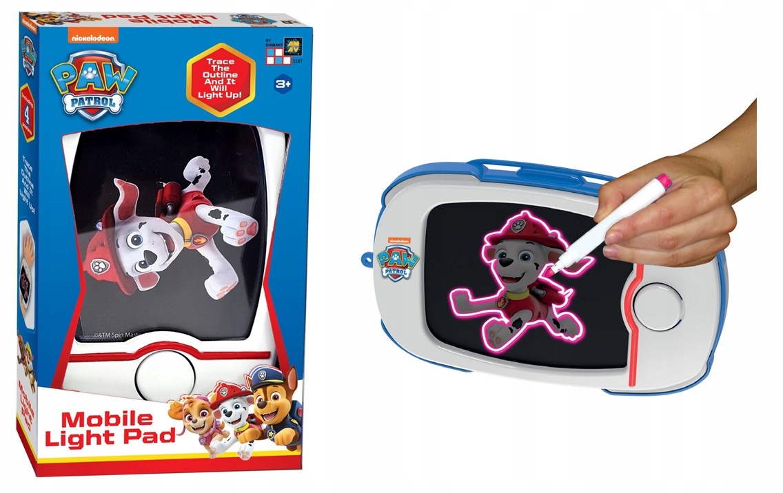 Освітіть світ уяви разом із героями Щенячого патруля! Цей унікальний мобільний світловий килимок стане ідеальною іграшкою для маленьких художників, які люблять малювати та творити. Просто виберіть свій улюблений шаблон, візьміть чарівний фломастер і обведіть контури - і малюнок одразу засяє різнокольоровим світлом!