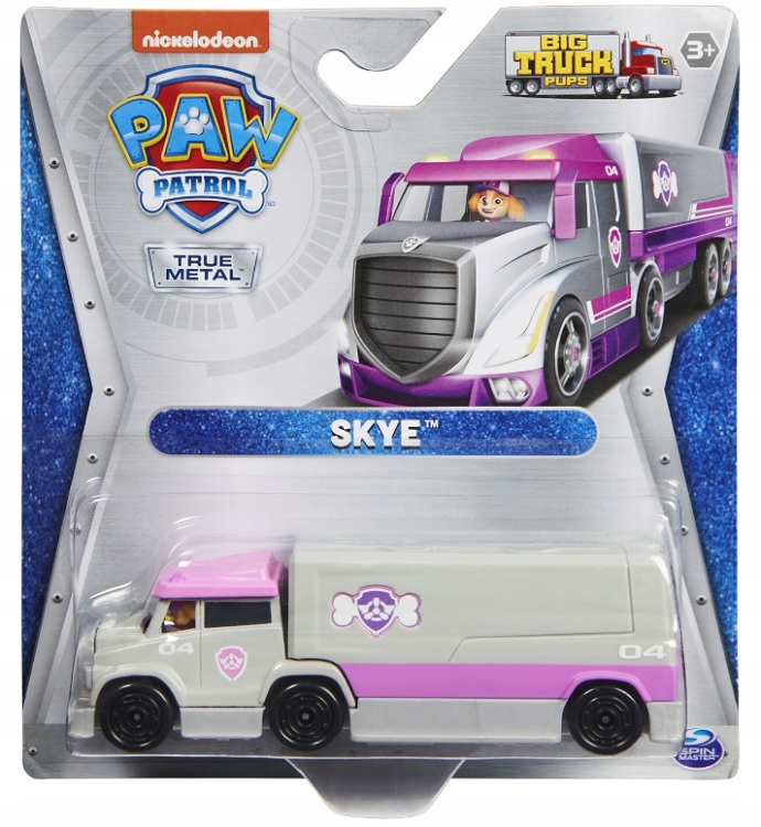 Щенячий патруль: Велика вантажівка Pups True Metal! Мчиться на допомогу швидше, ніж будь-коли раніше, і створюйте власні захоплюючі місії, натхненні Big Truck Pups. Ці металеві транспортні засоби в масштабі 1:55 виглядають так само, як транспортні засоби із серії Paw Patrol Big Truck. З автентичними деталями та графікою, рухомими колесами та литими під тиском матеріалами автомобілі True Metal готові до швидких рятувальних операцій! Штовхайте транспортний засіб рукою або пускайте вперед для надшвидких пригод! Кожне цуценя закинуто всередину свого транспортного засобу з вухами, які лопочуть на вітрі, коли він мчить на допомогу! Завдяки такій кількості справжніх металевих транспортних засобів PAW Patrol, від Mighty Pups до PAW Patrol Movie, діти можуть насолоджуватися всіма своїми улюбленими транспортними засобами із серіалу — а тепер ще й PAW Patrol: Big Truck Pups! Діти можуть легко стежити за своєю колекцією PAW Patrol True Metal, відсканувавши QR-код на звороті упаковки, щоб переглянути постер колекціонера. Фігурки PAW Patrol, машинки, ігрові набори та м’які тварини є ідеальними іграшками для хлопчиків і дівчаток від 3 років, тож перенесіть дії PAW Patrol у свій власний дім із PAW Patrol: Big Truck Pups!