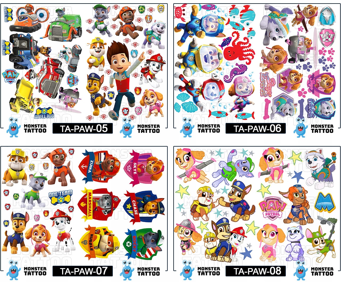 PAW PATROL ТАТУЮВАННЯ, ЩО МОЖУТЬ МИТИСЯ, БАГАТО ДИЗАЙНІВ, ЯКІСТЬ