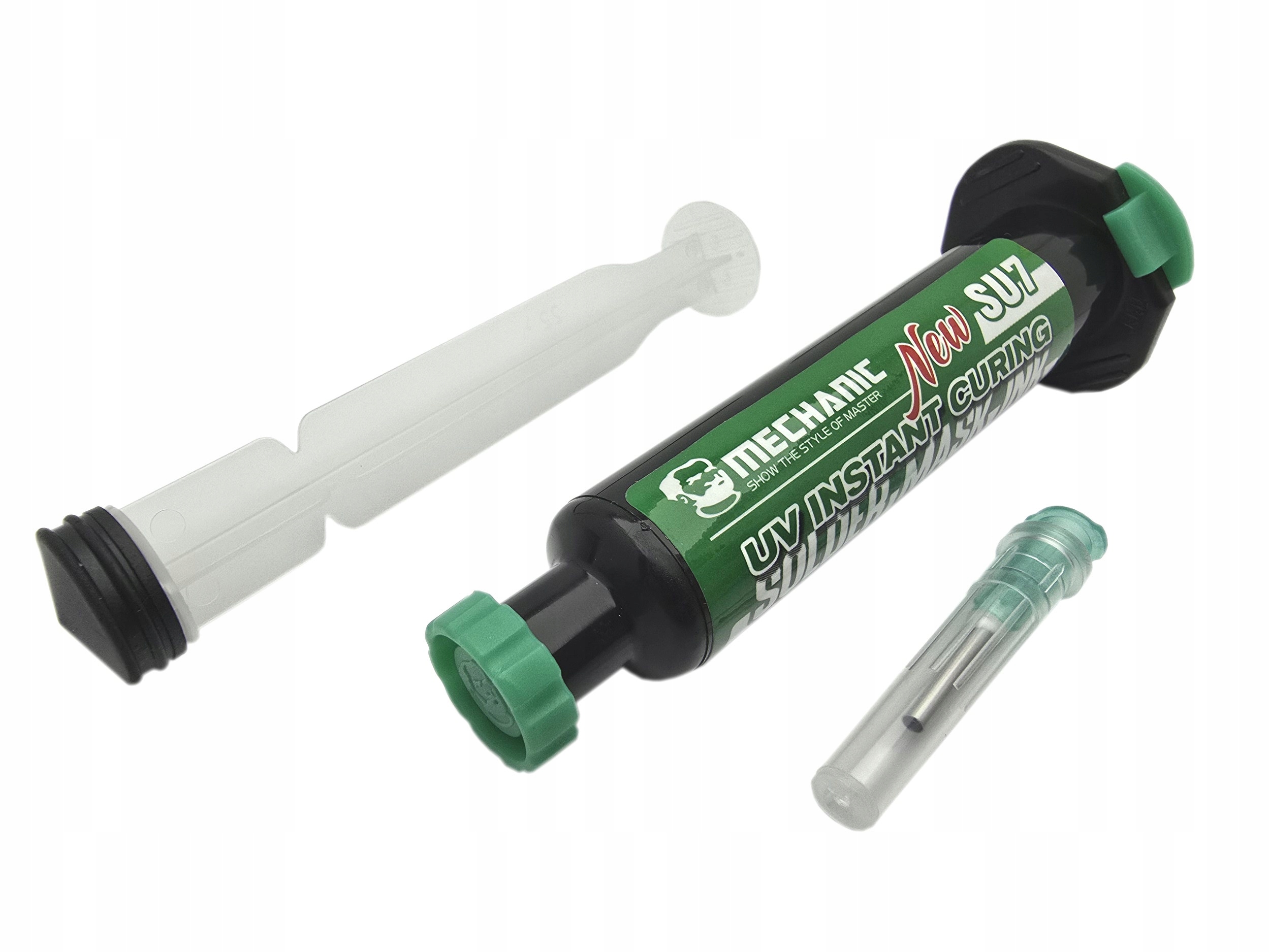 Світлополімеризуюча маска Soldermask SU7, яка використовується у виробництві друкованих плат (PCB). Він захищає паяльні площадки та сліди від корозії, механічних пошкоджень і короткого замикання, а також полегшує процес пайки.