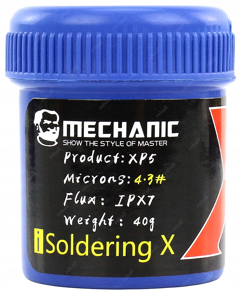 Паяльна паста Mechanic XP5 - це особливий вид легкоплавкої паяльної пасти (олово у вигляді пасти), призначений для пайки iPhone X/XS/XR/XS. Компоненти MAX та електронні компоненти, наприклад, SMD, BGA, наприклад, у процесі ремонту. Завдяки дуже низькій точці плавлення рівно 148°C, використання пасти в цьому процесі дозволяє виконувати складні ремонти (наприклад, замінити ЦП в iPhone), не піддаючи решту компонентів телефону пошкодженню, яке температура пайки 217°C.