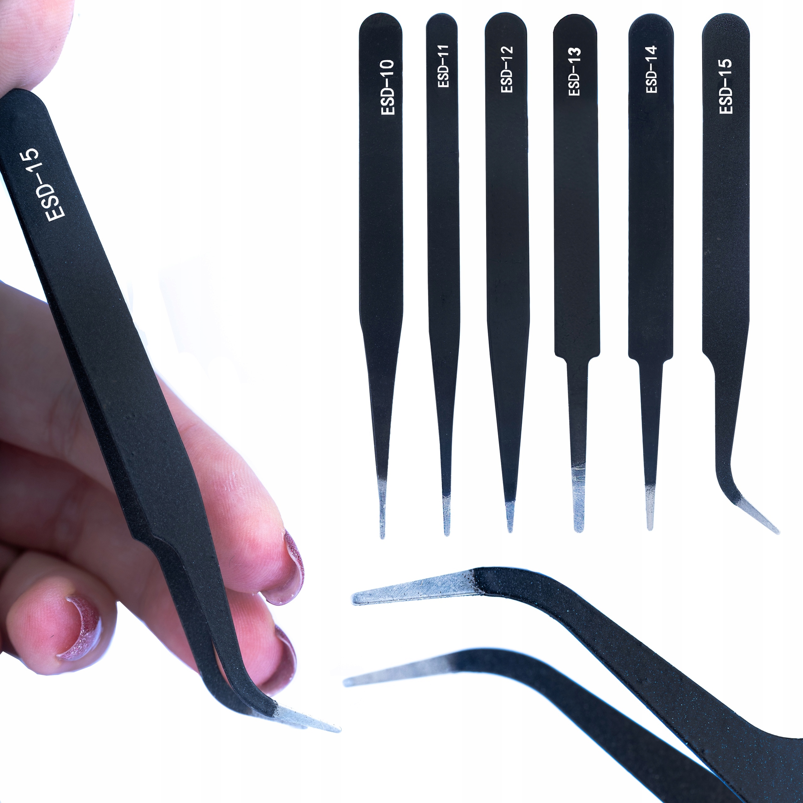 ✅ Набір із 6 точних пінцетів: інструменти для маніпулювання дрібними елементами.