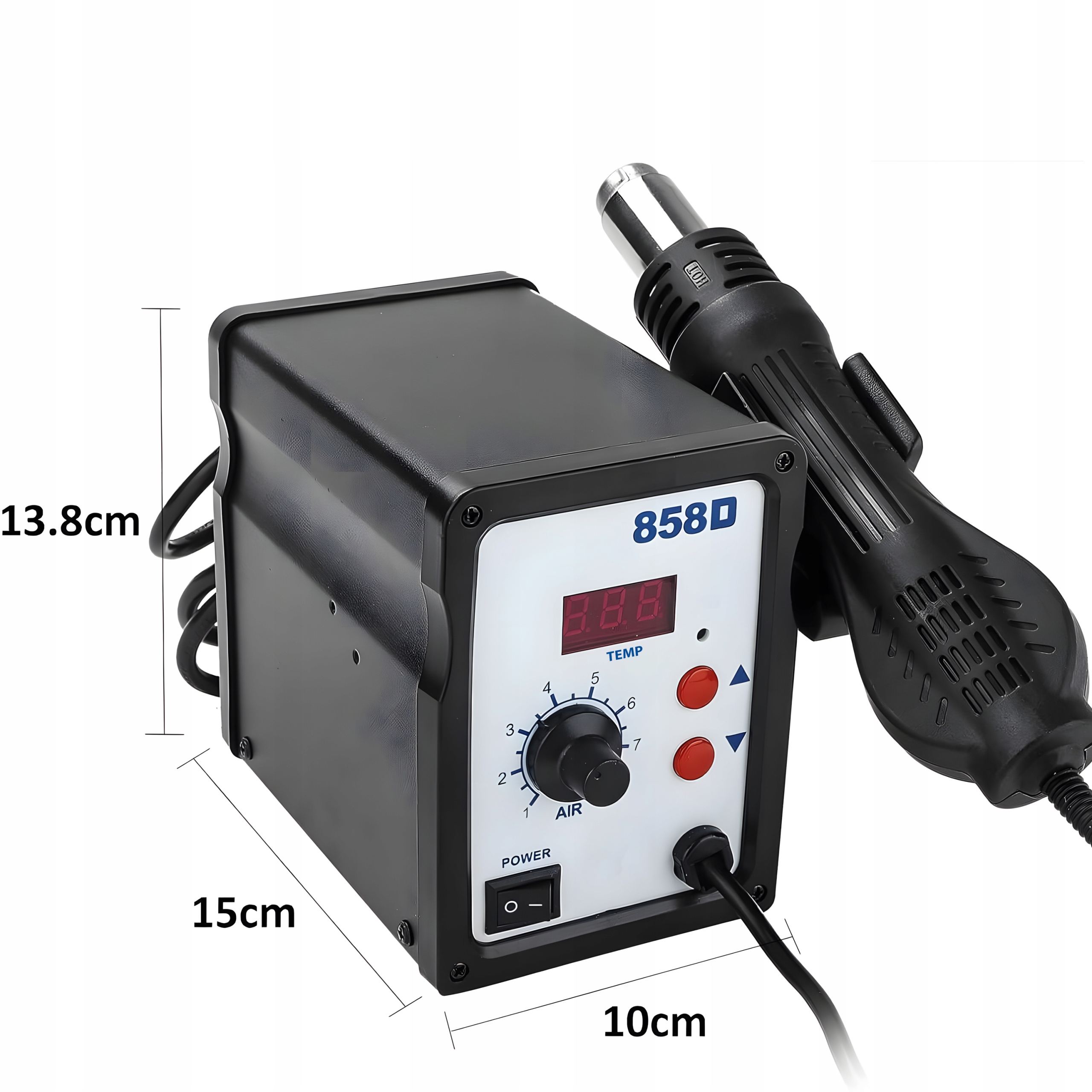 Завдяки точному контролю температури та потоку повітря, 858d Пайка з гарячим повітрям забезпечує повний контроль над процесом пайки , що забезпечує ефективну та точну продуктивність кожного завдання.