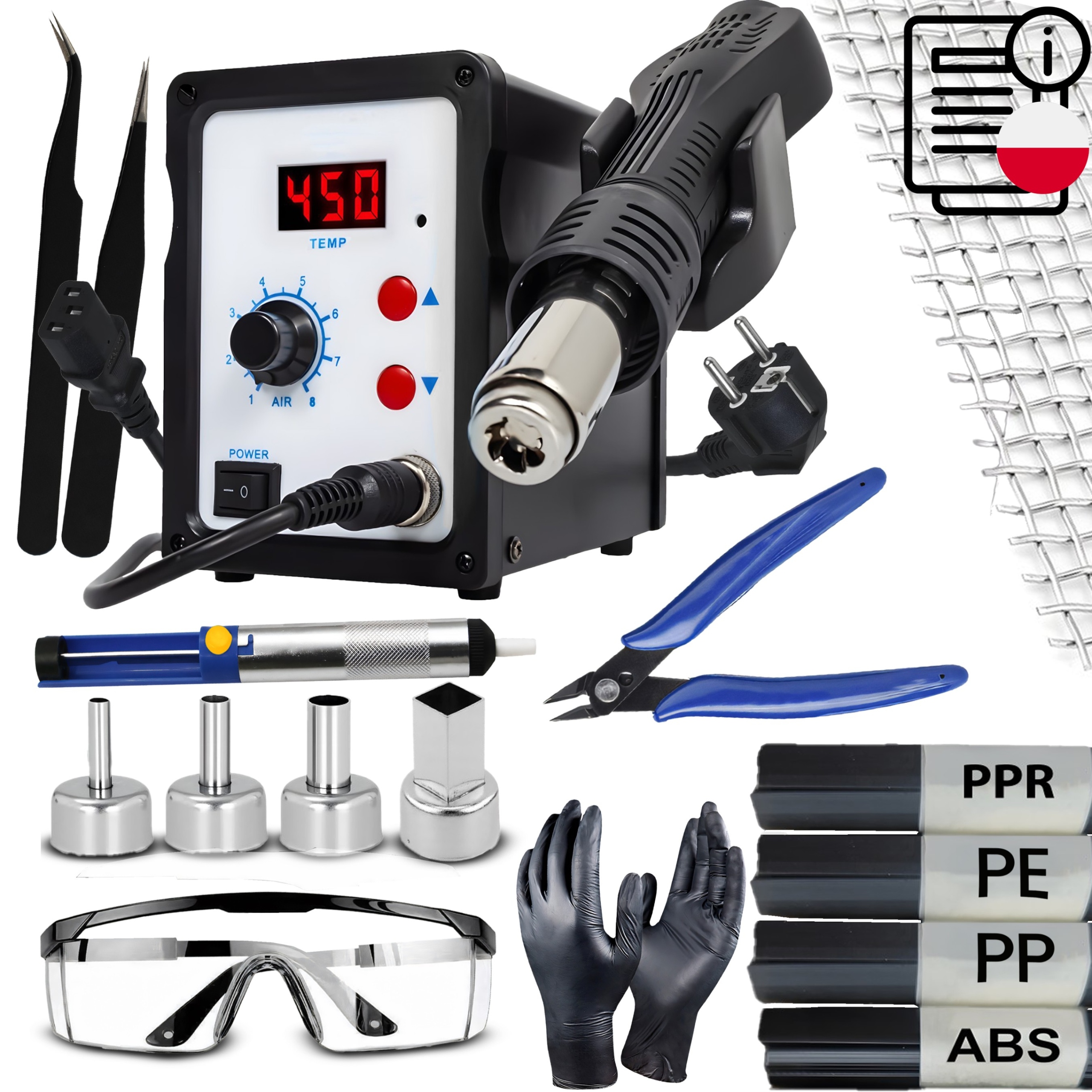 Станція з гарячим пайкою -це універсальний інструмент, який дозволяє точно пайки та зварювати, за допомогою гарячого повітря, ідеально підходить для роботи з електронікою, ремонтом пластику та багатьма іншими матеріалами.