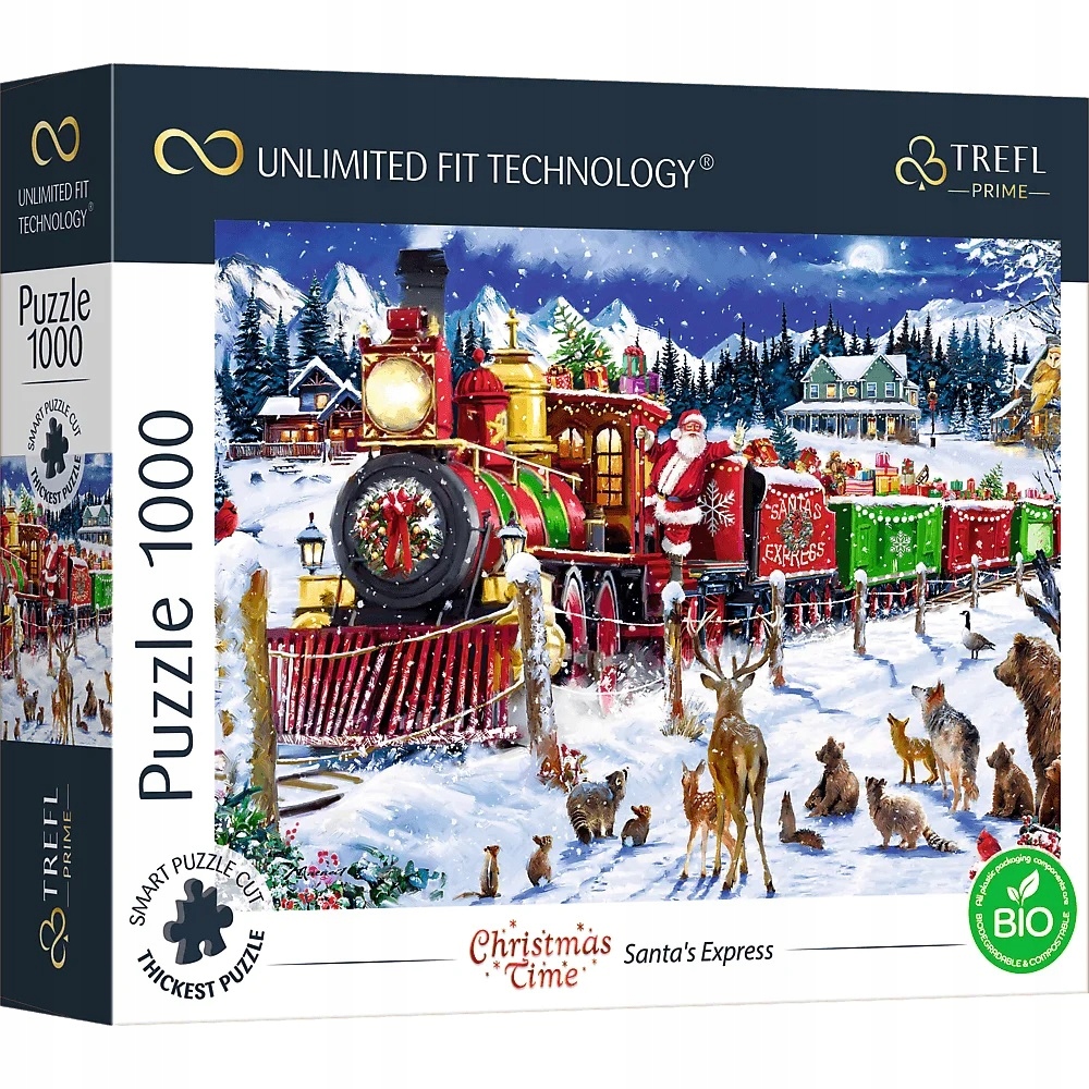 Пазли серії Trefl Prime UFT, що складаються з 1000 елементів, присвячені справжньому пазлу коханці. На пазлі зображений різдвяний потяг Діда Мороза. Після складання вийде зображення розміром 683х480 мм.