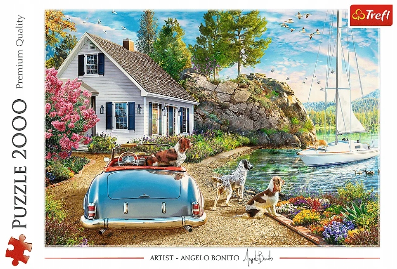 На пазлі з 2000 елементів зображено чарівний котедж на березі озера, який є ідеальним місцем для відпустки. Після компонування буде створено зображення розміром 961x682 мм.