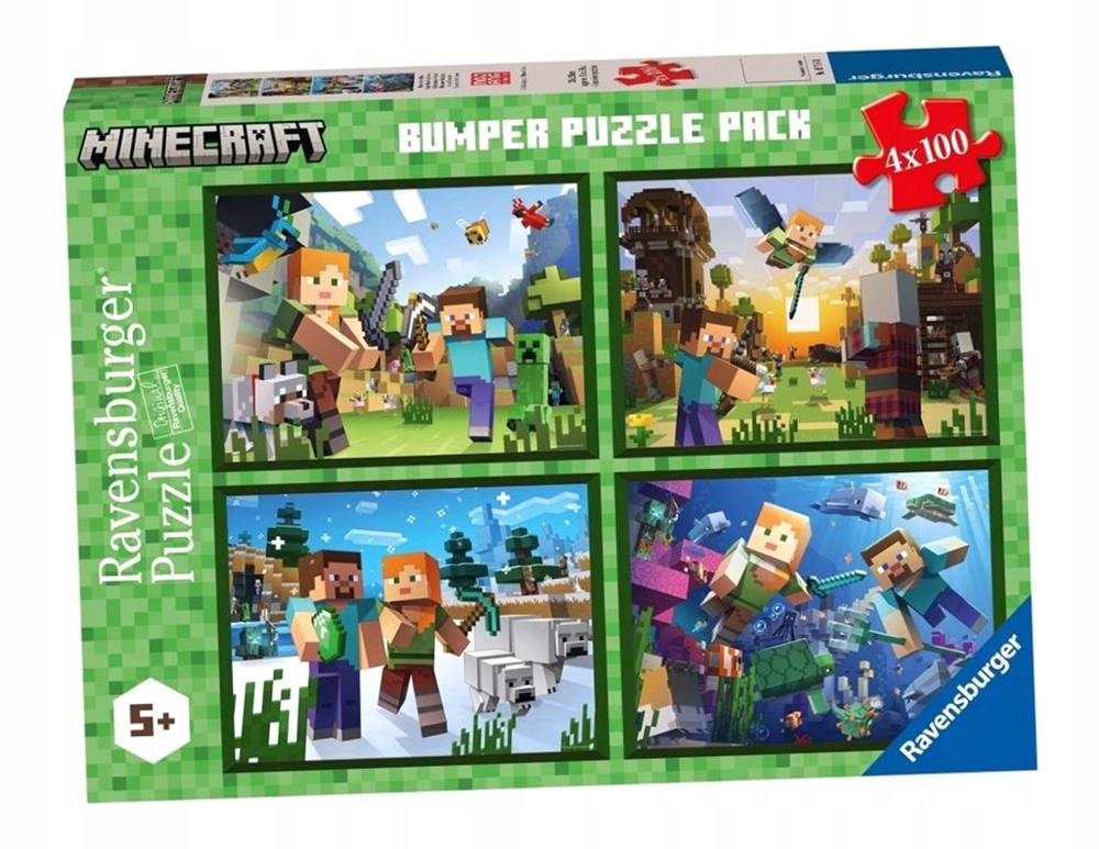Пазл 4 х 100 елементів Ravensburger - це набір з 4 пазлів (по 100 елементів) із зображенням мотивів Minecraft.
