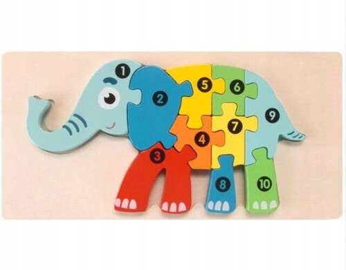 Дерев'яний пазл зі слоном складається з 10 елементів.