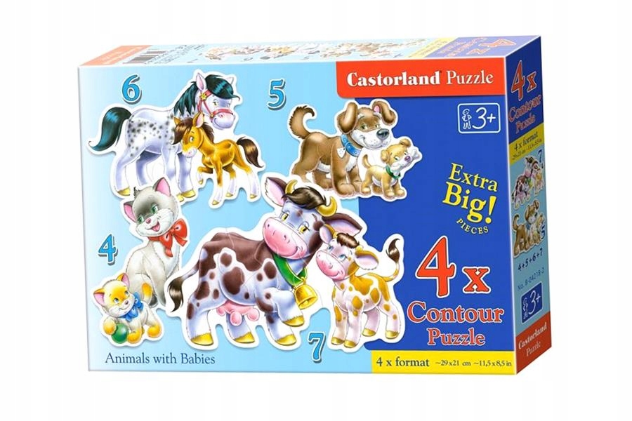 4 x Пазли 4*5*6*7 Contour Puzzles - 4 пазли в 1 коробці!!! Головоломка для найменших, що складається з чотирьох окремих картинок різного ступеня складності. Яскраві кольори, ретельно підібрані візерунки та велика кількість елементів дозволять маленькій дитині легко розставити кожну картинку. Ці головоломки запрошують вас відкрити захоплюючий світ казок, тварин і автомобілів. Вони допоможуть розвинути вміння асоціювати та підвищать ефективність роботи. 4 картинки розміром прибл. 29 х 20 см