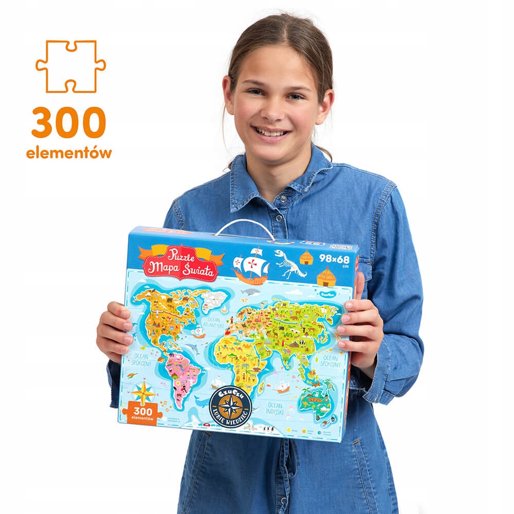 Розкладіть пазли та перевірте, які тварини живуть на різних континентах – чи є такі, яких ви ще не знали. чули раніше? ви знали? Простежте маршрути історичних дослідників і мандрівників. Що вас зацікавило? Шукайте інформацію про характерні споруди та витвори культури та техніки, дізнавайтеся, кого люди видно на різних континентах. Підготуйте фігурки тварин або конструкції з картону чи кубиків і використовуйте пазли як сцену для різноманітних ігор - ваша фантазія не має меж! Як щодо оригінальної прикраси для дитячої кімнати: готові пазли чудово виглядатимуть в рамці.