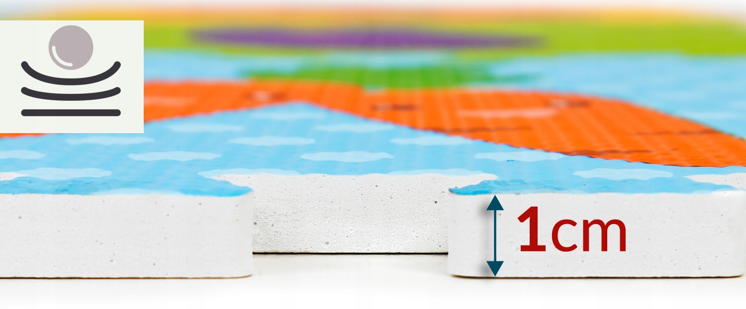 Завдяки товстій піні EVA (1 см) ви можете бути впевнені, що килимок ефективно пом'якшить будь-яке падіння.