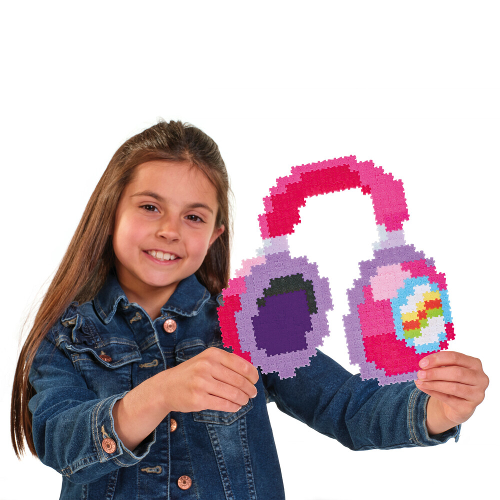Великий набір містить 1250 різнокольорових, точно вирізані пластикові крихітні пазли, з яких можна створити два великих візерунка - крилаті роликові ковзани та кольорові навушники і все, що душа забажає.