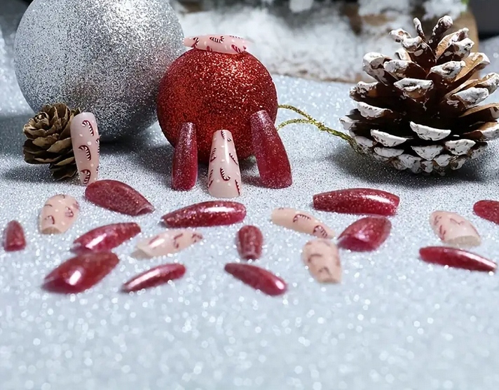 Paznokcie PRESS ON NAILS TIPSY 24 cukro laski brokat BOŻE NARODZENIE ŚWIĘTA