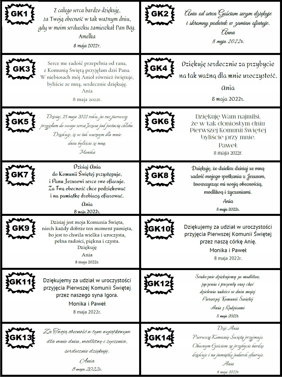 Подячні листівки до Першого Причастя для гостей.