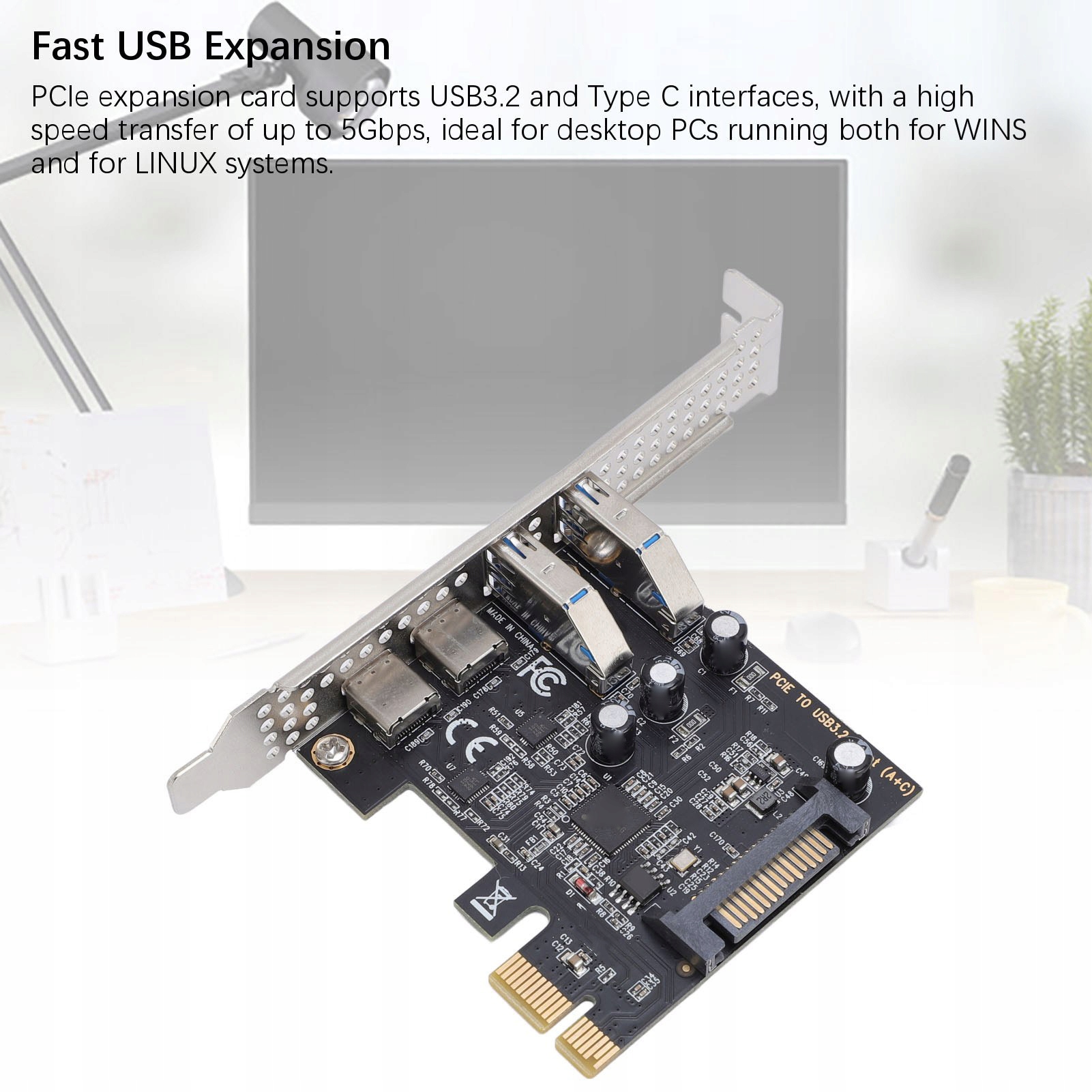 1. Швидке розширення USB: карта розширення PCIE ковзає USB3.2 та інтерфейси типу C, при високій швидкості до 5 ГБ / с, ідеально підходить для настільних комп'ютерів, що працюють як для виграшів, так і для систем Linux.