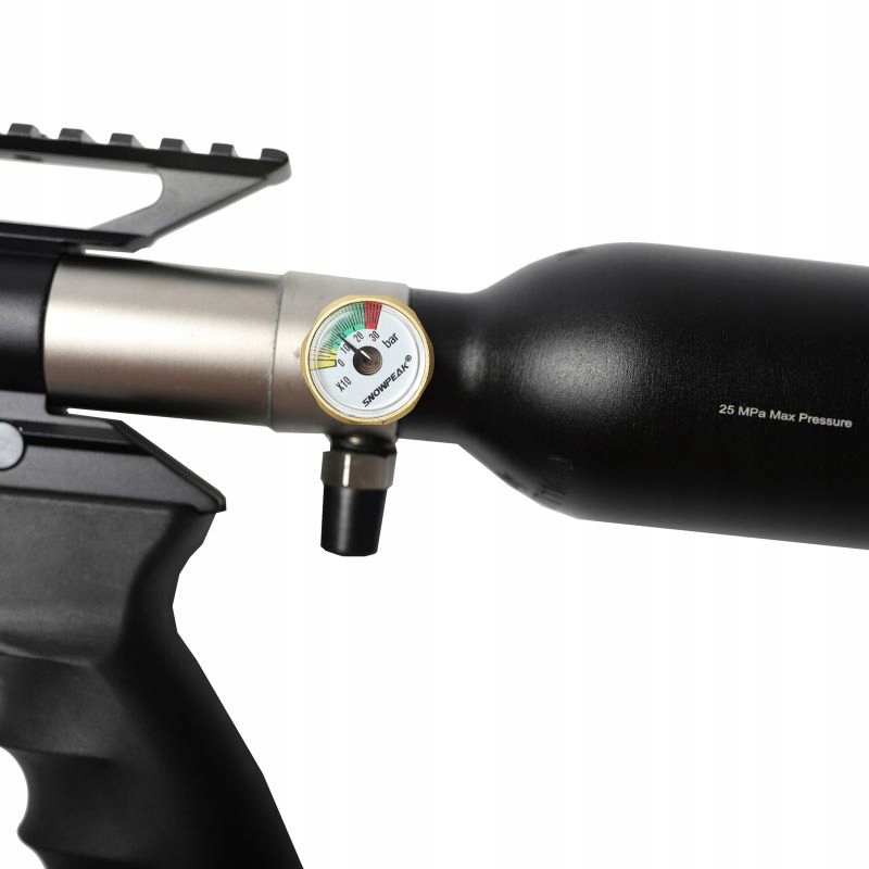Artemis Snowpeak M18 з тактичним прикладом з синтетичного волокна. Форму можна вистрілити за допомогою слима, 350 мл циліндра достатньо, щоб вистрілити близько 40-50 сильних пострілів. У карабіні є вбудований регулятор тиску, він дуже точний і повторюваний, ми маємо ефективний затягнутий глушник. Вага гвинтівки становить лише 2,9 кг
